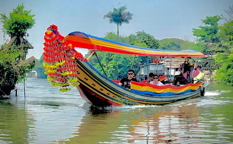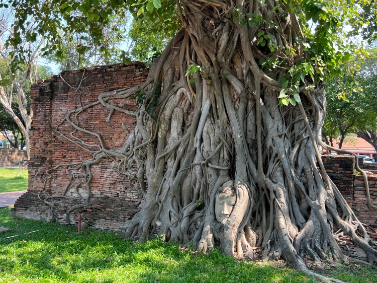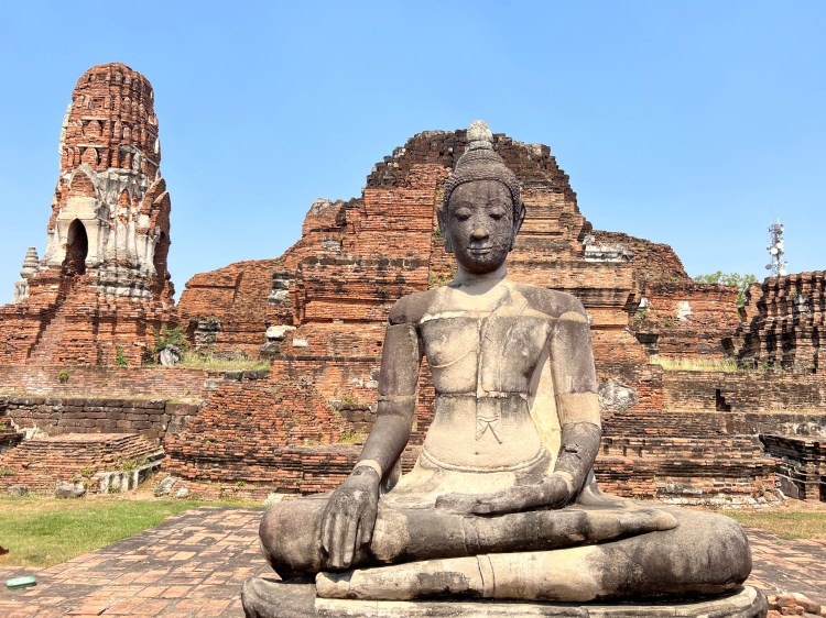 Ayutthaya, 14th century, ancient ruins about one hour outside of Bangkok. Boat ride around the summer palace of the Thai King.